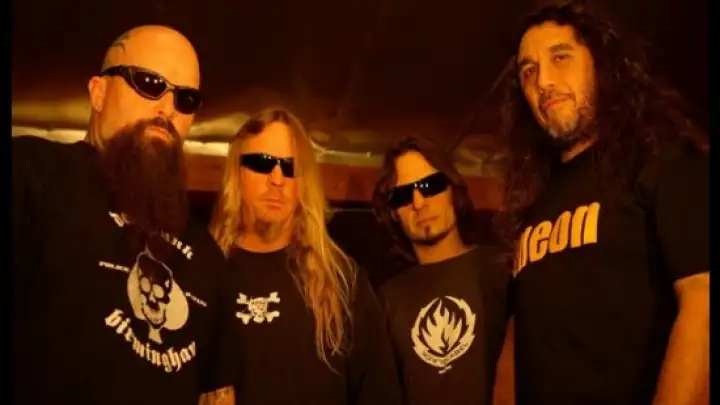 O guitarrista da banda de thrash metal Slayer Jeff Hanneman (segundo a esquerda na foto) contraiu uma rara e grave doença provavelmente ao ser picado por uma aranha. A fascite necrosante é causada por uma bactéria que se alimenta da gordura, tecidos e pele do corpo humano causando assim deformações impressionantes para dizer o mínimo. o guitarrista será submetido a uma cirurgia ainda essa semana.