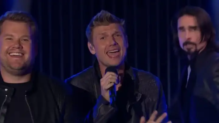 O grupo Backstreet Boys surpreendeu o público do talk show de James Corden nesta terça-feira (27) ao fazer uma performance do hit "" com participação do apresentador.
