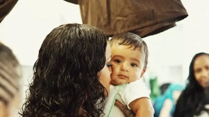 Durante o período de filmagem, a barbadiana aproveitou o momento para brincar e posar com o filho do DJ, o pequeno Asahd Khaled. A cantora encheu o menino de beijos nas fotos.