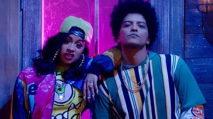 Bruno Mars divulgou, ontem (3), o clipe do remix da música "Finesse", faixa que faz parte do último álbum do cantor, "24K Magic" (2016), e que agora ganha uma nova versão com a participação da rapper Cardi B.