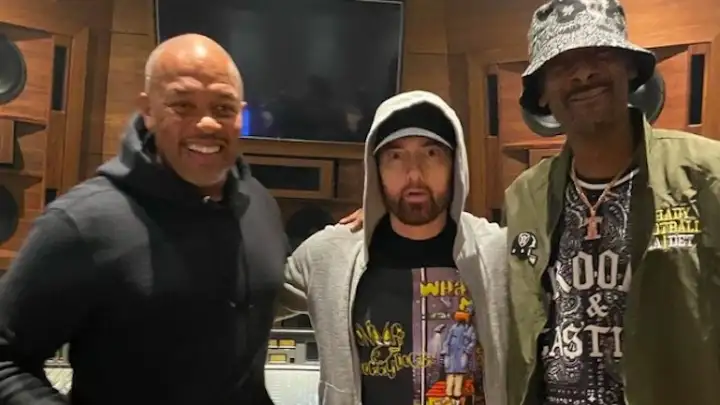 Eminem deixou os fãs animados ao postar uma foto em estúdio com Dr. Dre e Snopp Dogg. A publicação foi feita na segunda-feira (15) e agitou rumores de uma possível nova colaboração reunindo os três nomes.